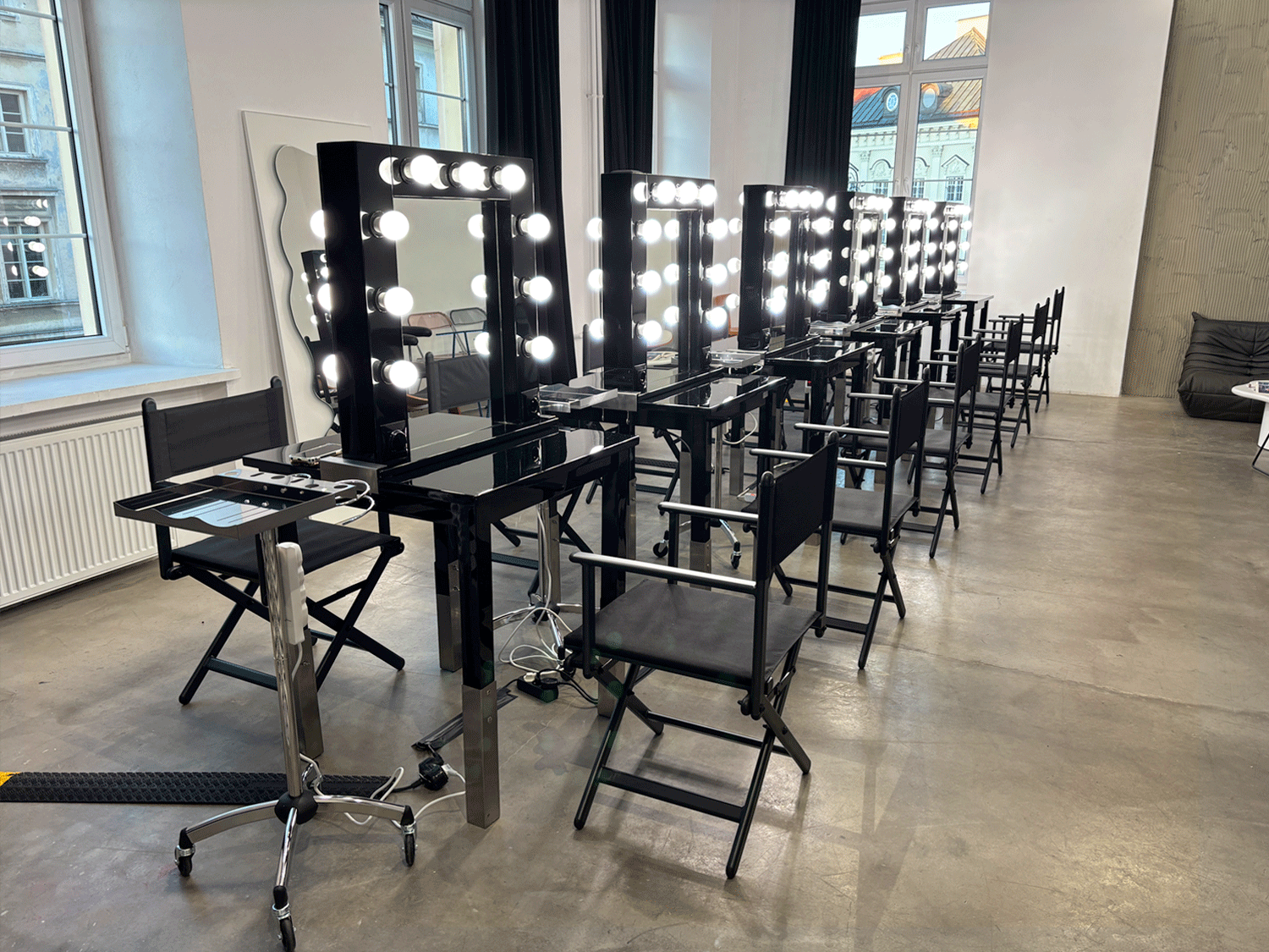 Stanowiska Dwustronne Fryzjerskie z Niskimi Krzesłami Reżyserskimi i Pomocnikami Do Stylizacji Włosów
